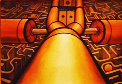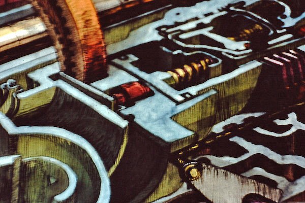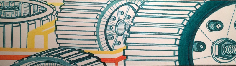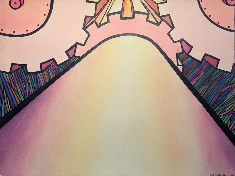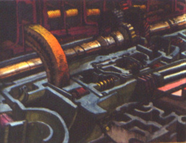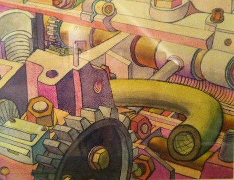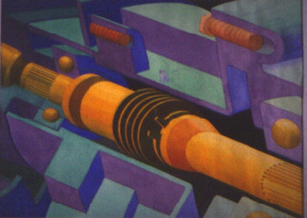 "GEARING", watercolor on rag paper, 14" x 20", 1989, $100.00
